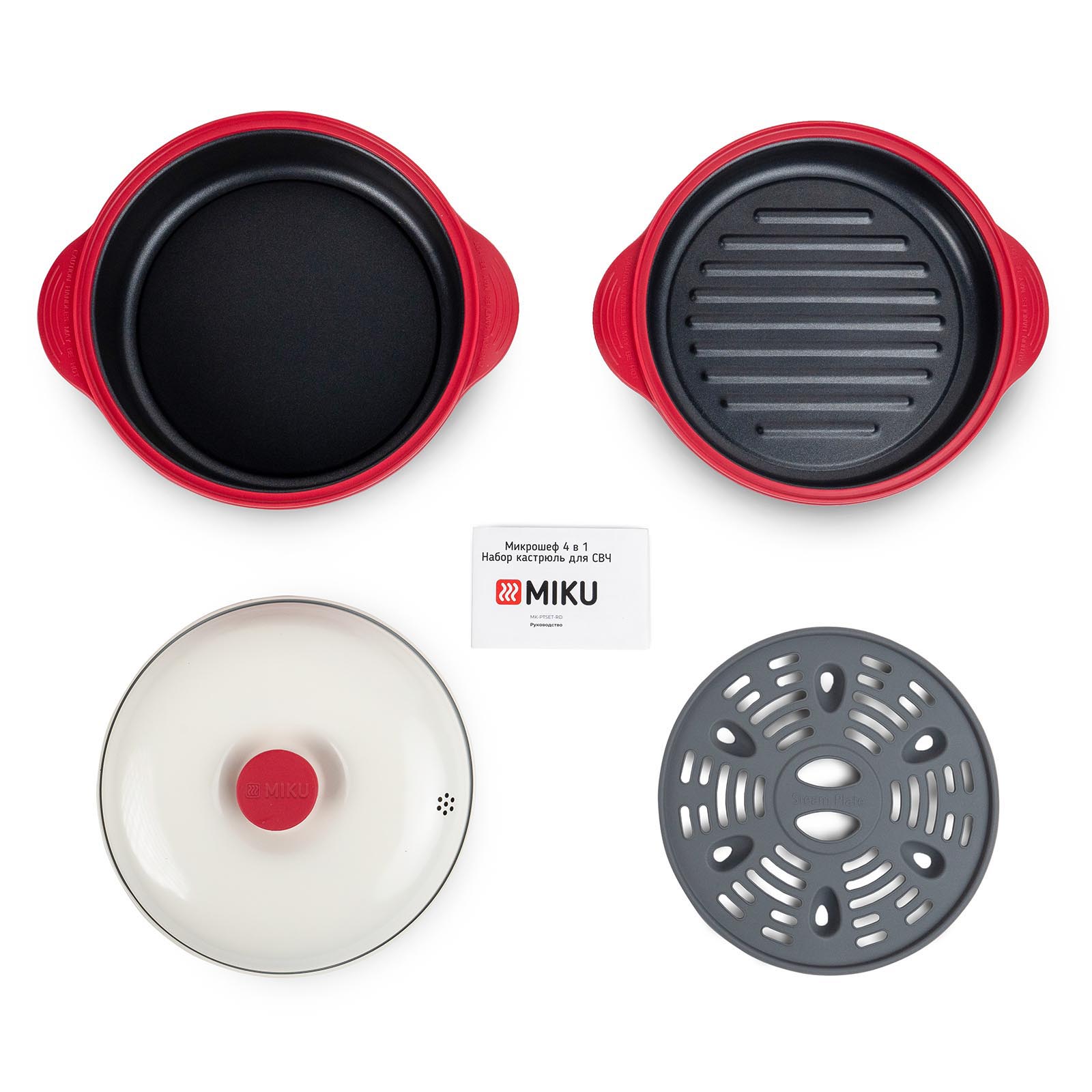 Набор разработан специально для микроволновок. Посуда превращает электромагнитное излучение в тепло — благодаря этому можно жарить, запекать и варить в СВЧ-печи. Продукты сохраняют аромат, вкус и пользу.