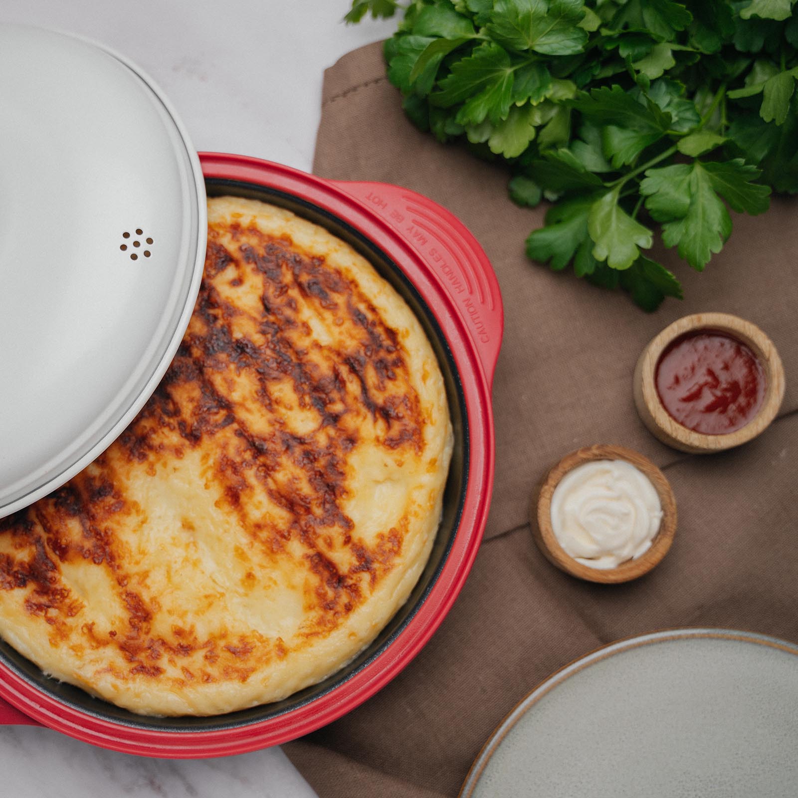 Вторая форма — для жарки. Готовьте в ней яйца, жарьте картошку и стейки из мяса и рыбы. Благодаря решетке на дне формы все продукты нагреваются равномерно. Не забывайте накрывать крышкой.