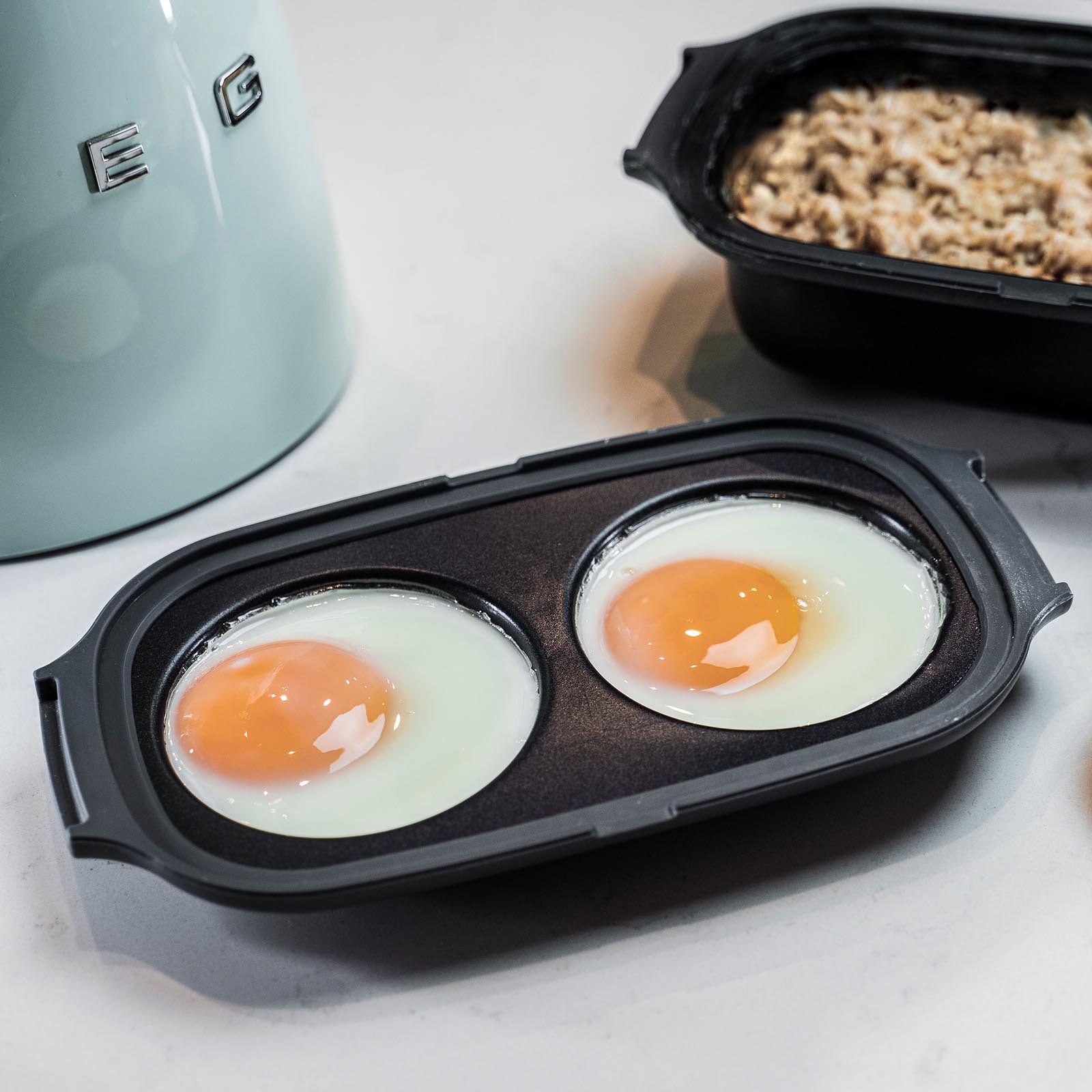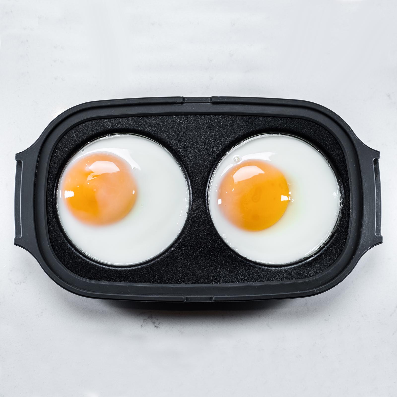 Идеальная яичница будет у вас на столе через 3 минуты. Аккуратно разбейте яйца, влейте по одному в каждую ячейку маленького контейнера. Плотно накройте крышкой и поставьте в микроволновую печь.