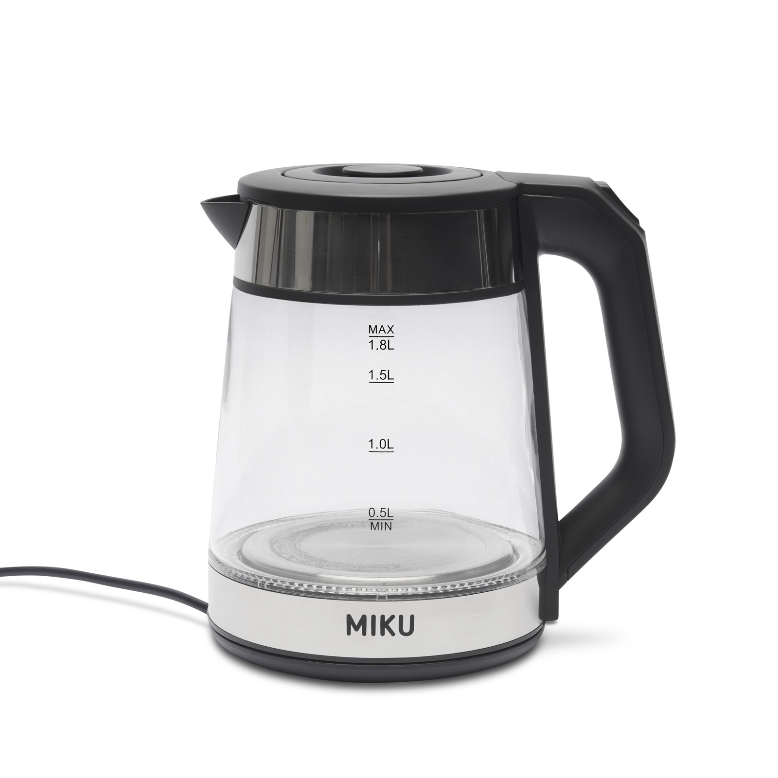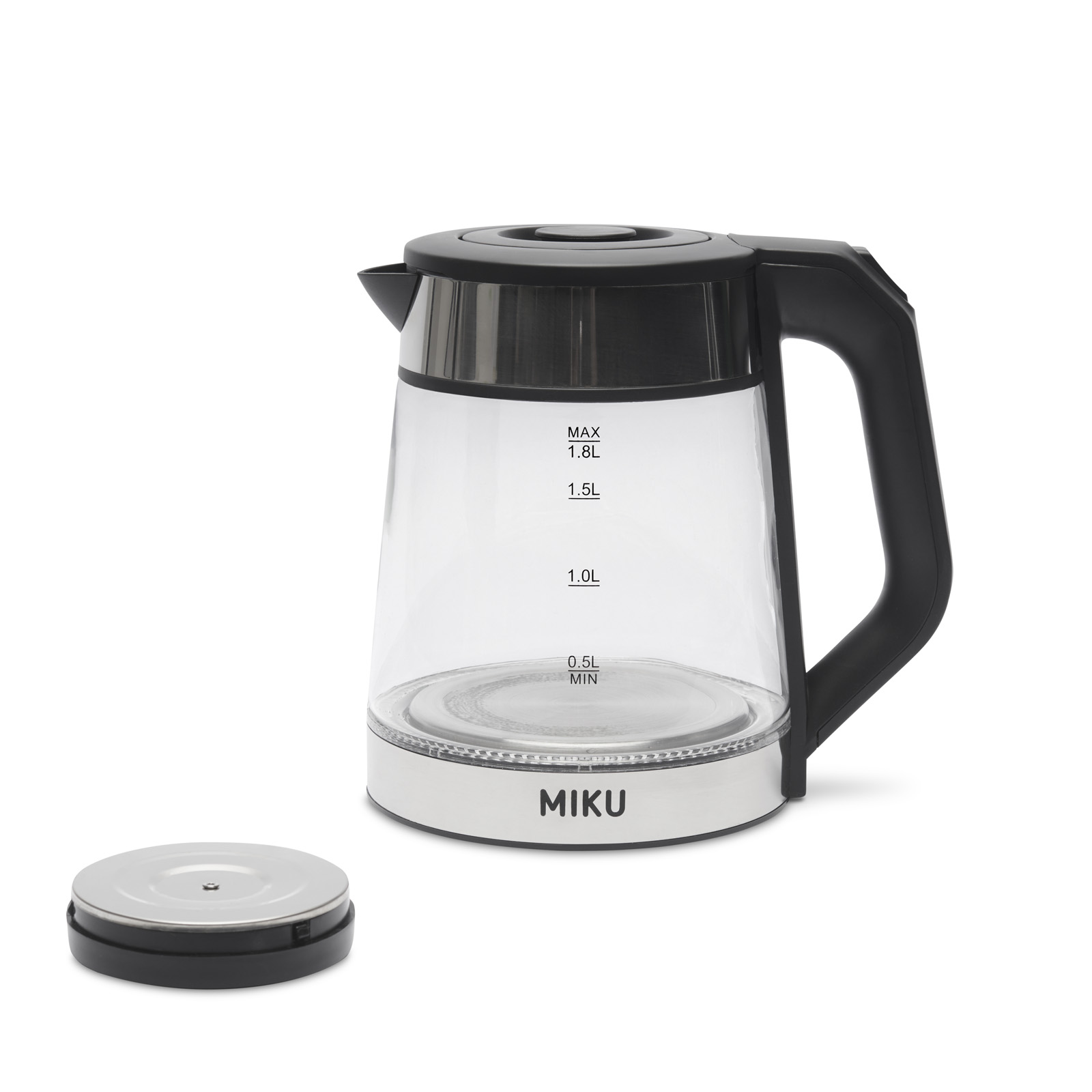 Объем электрического чайника — 1,8 л. Нагревательный элемент сделан из нержавеющей стали, надежный и долговечный. Чайник оснащен защитой от перегрева, защитой от включения без воды и поддерживает функцию автоматического отключения. Управляется при помощи одной кнопки. Во время кипячения в основании включается синяя подсветка.