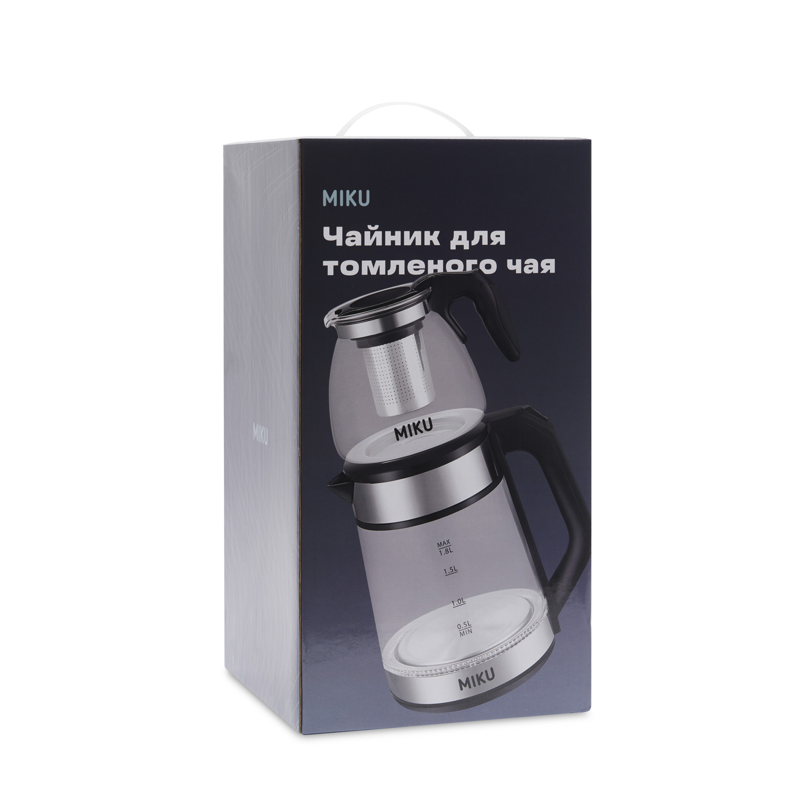 Комплект 2 в 1 для настоящих ценителей чая. В набор входит электрический чайник для кипячения воды и заварочный чайник с ситечком. Их можно использовать по отдельности, а можно установить заварочный в специальное отверстие в крышке электрического. Так вы сэкономите место на кухне, а при кипячении воды заварочный чайник будет подогреваться. Такая конструкция отлично подходит для заваривания томленого чая.