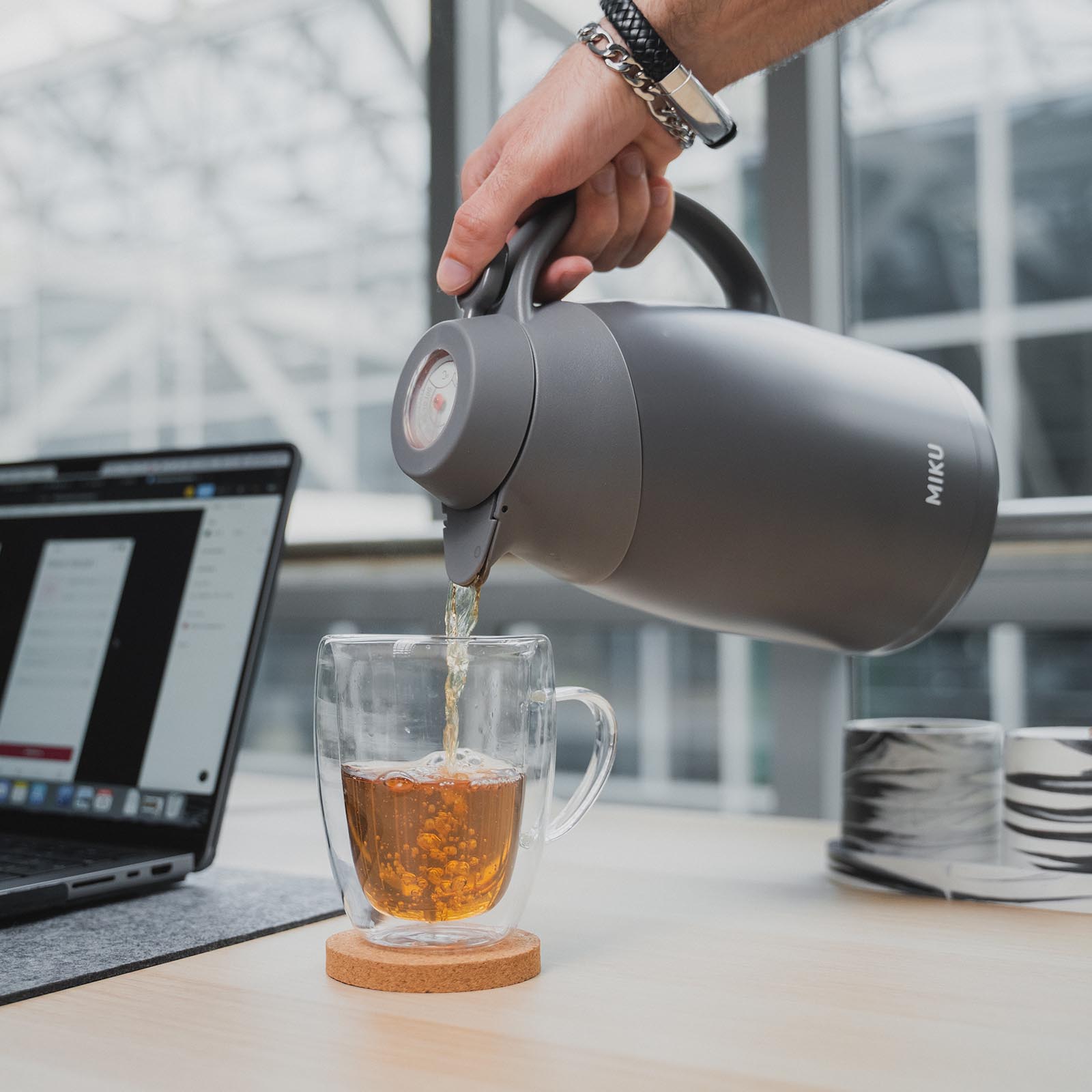 Кувшин-термос MIKU пригодится дома, в офисе и на даче. В нем можно заваривать чай — обычный, травяной или фруктовый. Напиток останется ароматным и горячим 24 часа*. Объем — 1,5 л, или шесть чашек.