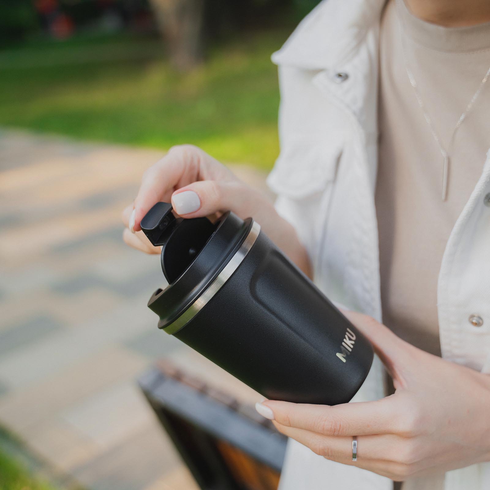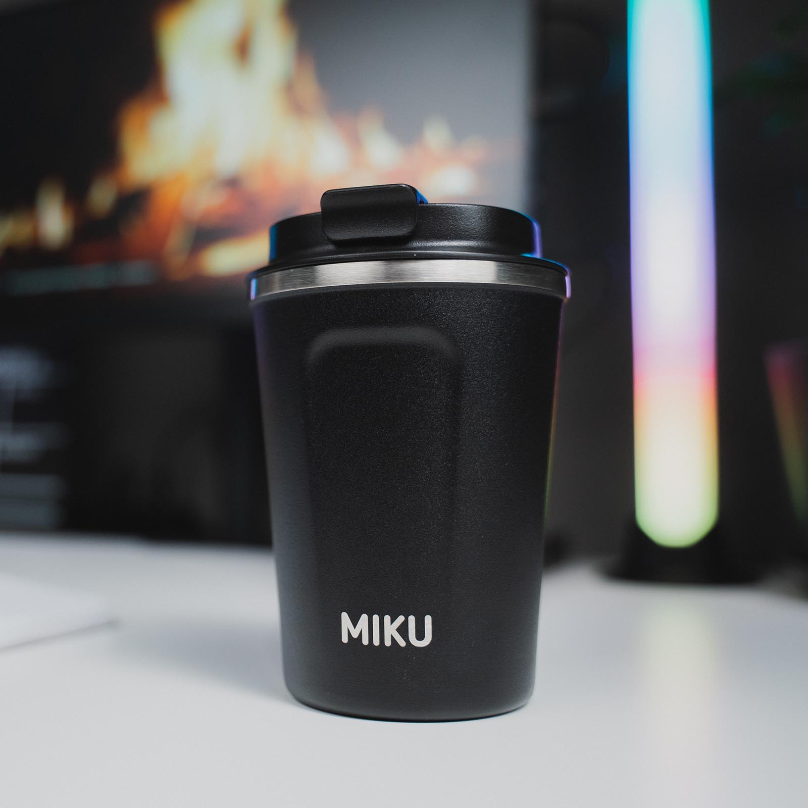 Термокружку MIKU не захочется выпускать из рук. Приятная на ощупь, не выскальзывает, помещается в автомобильный подстаканник. Пригодится на прогулке, в поездке и на работе. Если дела увлекут вас на несколько часов, чай или кофе останется горячим.