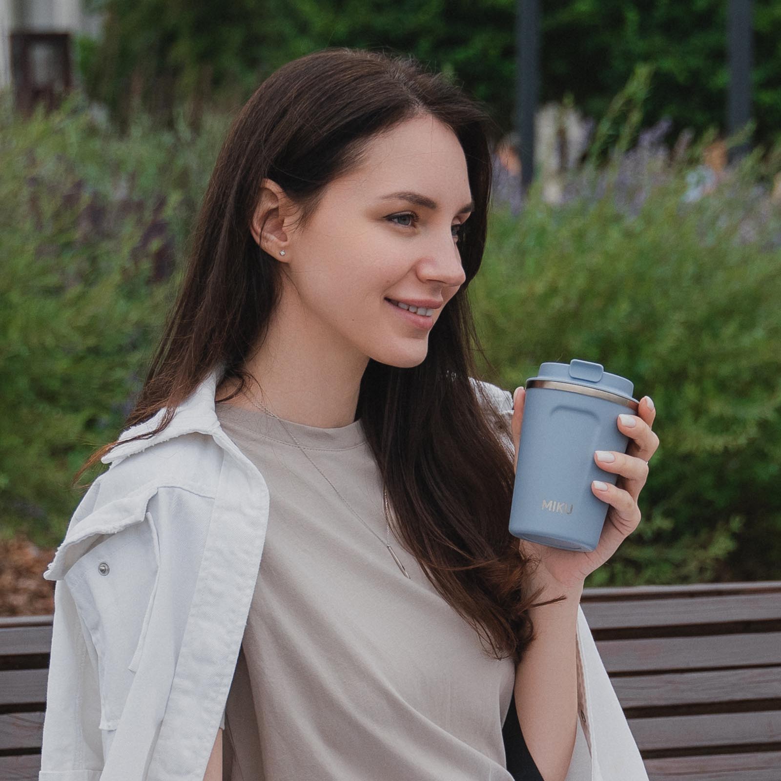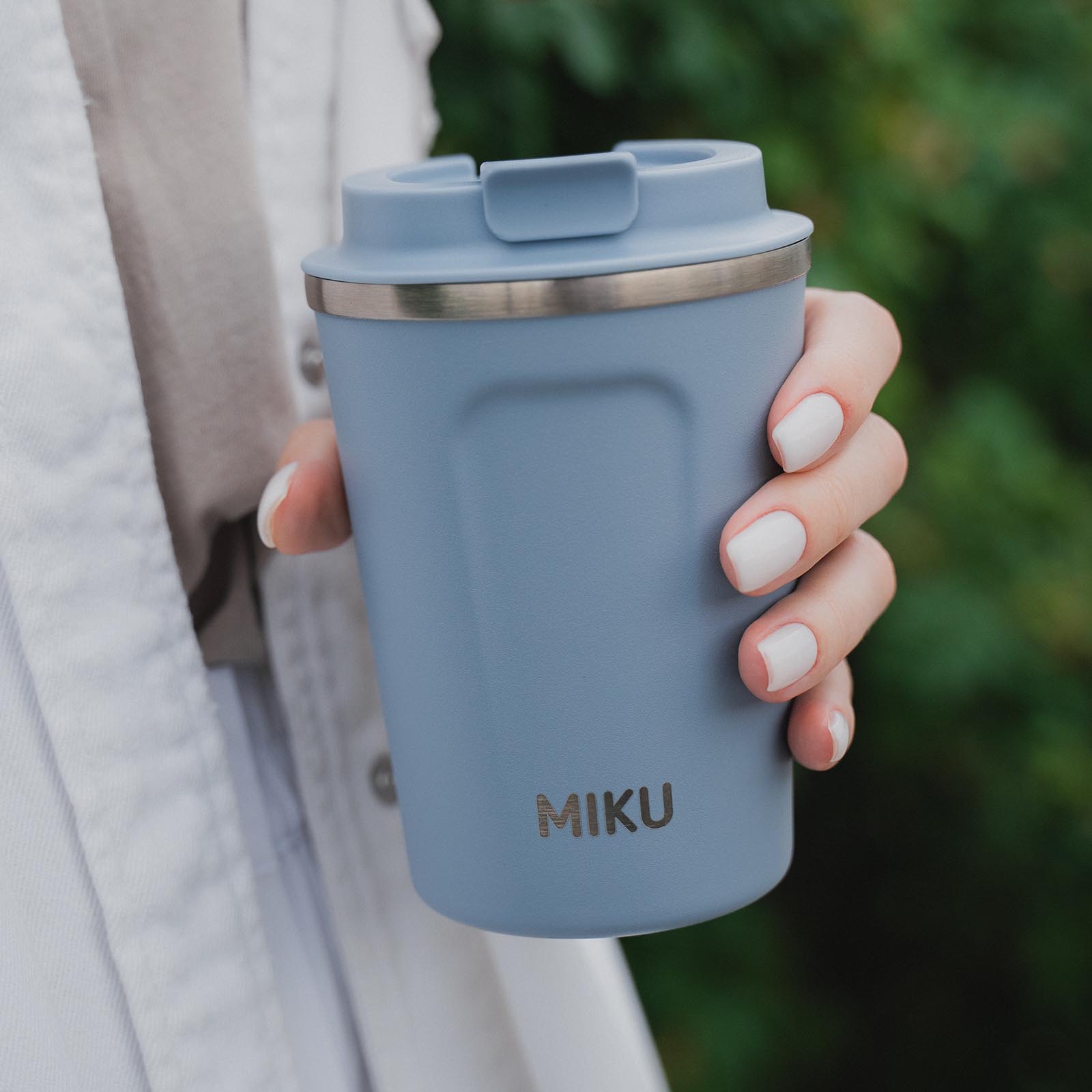 Термокружку MIKU не захочется выпускать из рук. Приятная на ощупь, не выскальзывает, помещается в автомобильный подстаканник. Пригодится на прогулке, в поездке и на работе. Если дела увлекут вас на несколько часов, чай или кофе останется горячим.