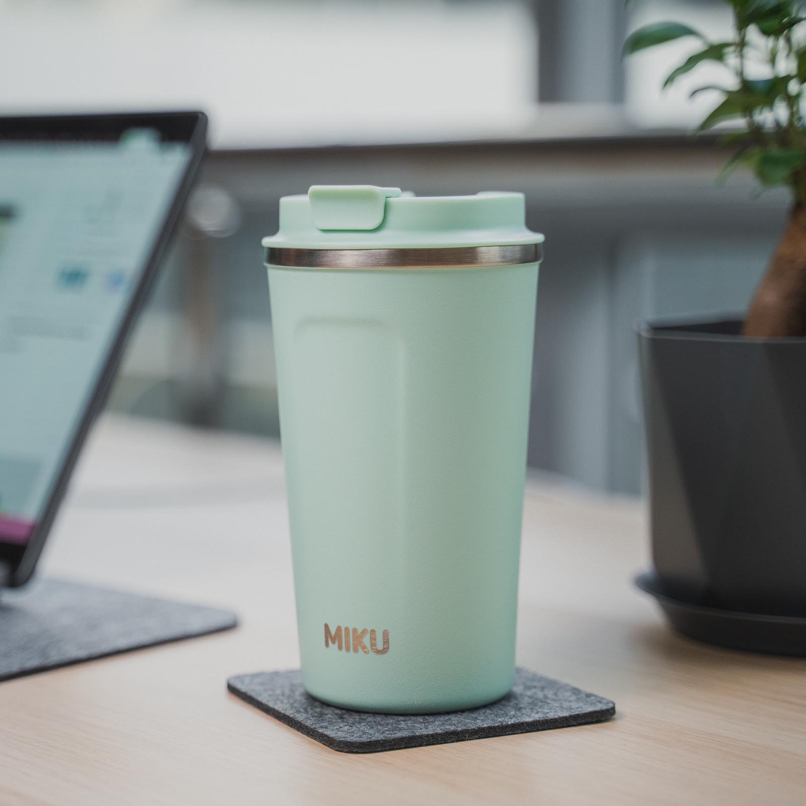 Термокружку MIKU не захочется выпускать из рук. Приятная на ощупь, не выскальзывает, помещается в большинство автомобильных подстаканников. Пригодится на прогулке, в поездке и на работе. Если дела увлекут вас на несколько часов, чай или кофе останется горячим.