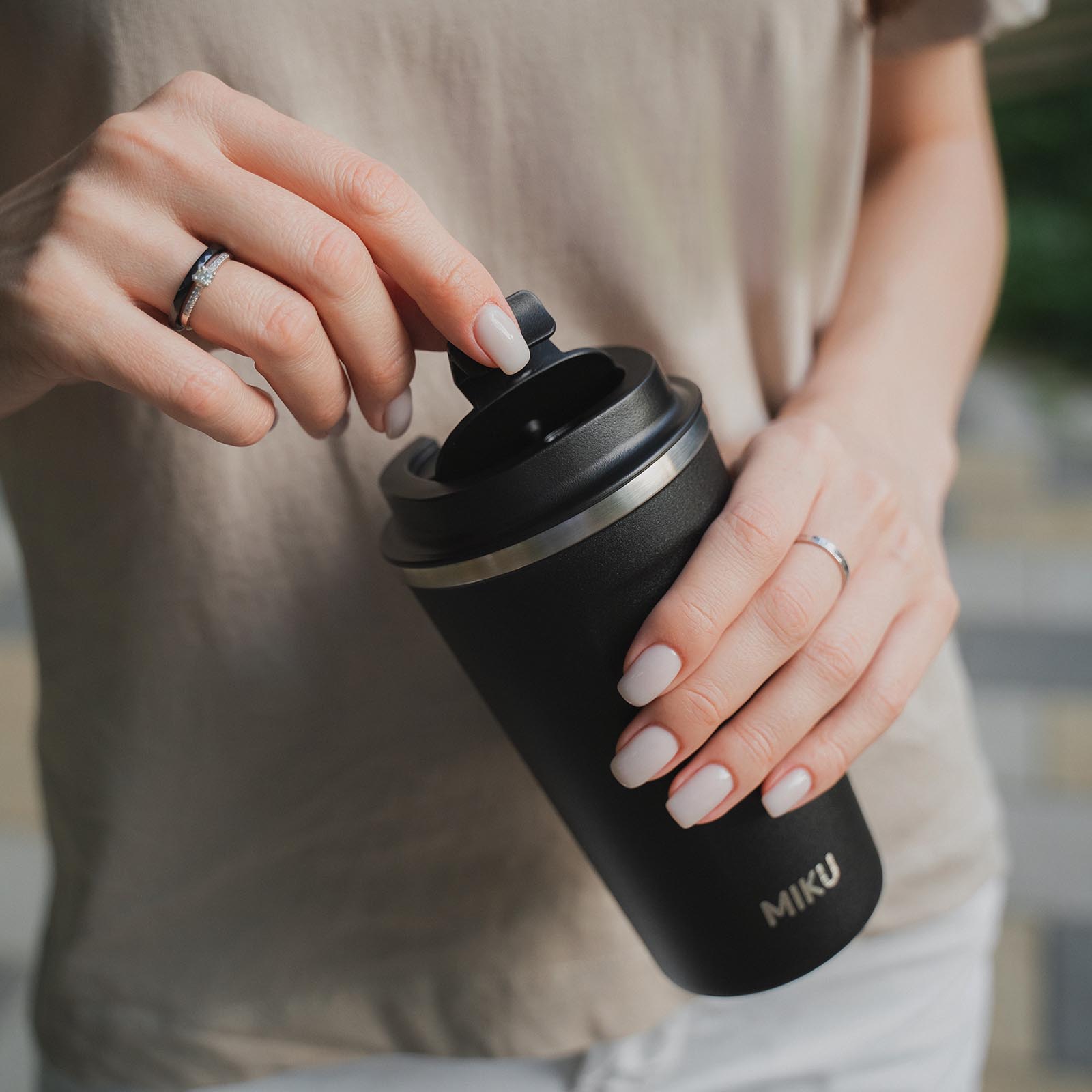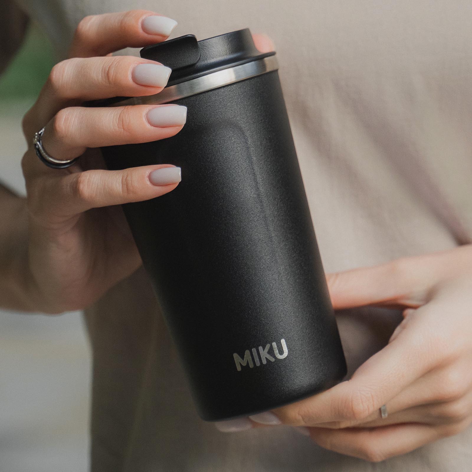 Термокружку MIKU не захочется выпускать из рук. Приятная на ощупь, не выскальзывает, помещается в большинство автомобильных подстаканников. Пригодится на прогулке, в поездке и на работе. Если дела увлекут вас на несколько часов, чай или кофе останется горячим.