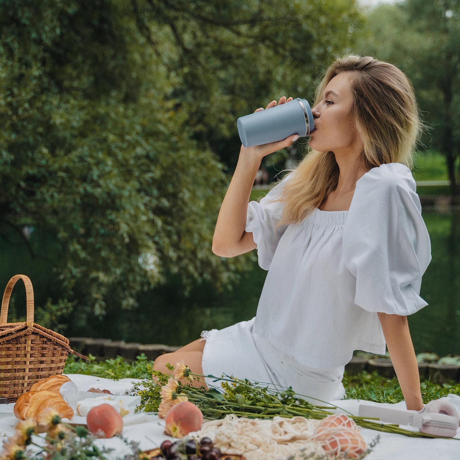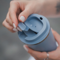 Объем кружки — 510 мл. Она сделана из пищевой нержавеющей стали и сохраняет температуру напитка до 6 часов* за счет вакуумной изоляции стенок. Крышка плотно закручивается, а горлышко закрывается клапаном.