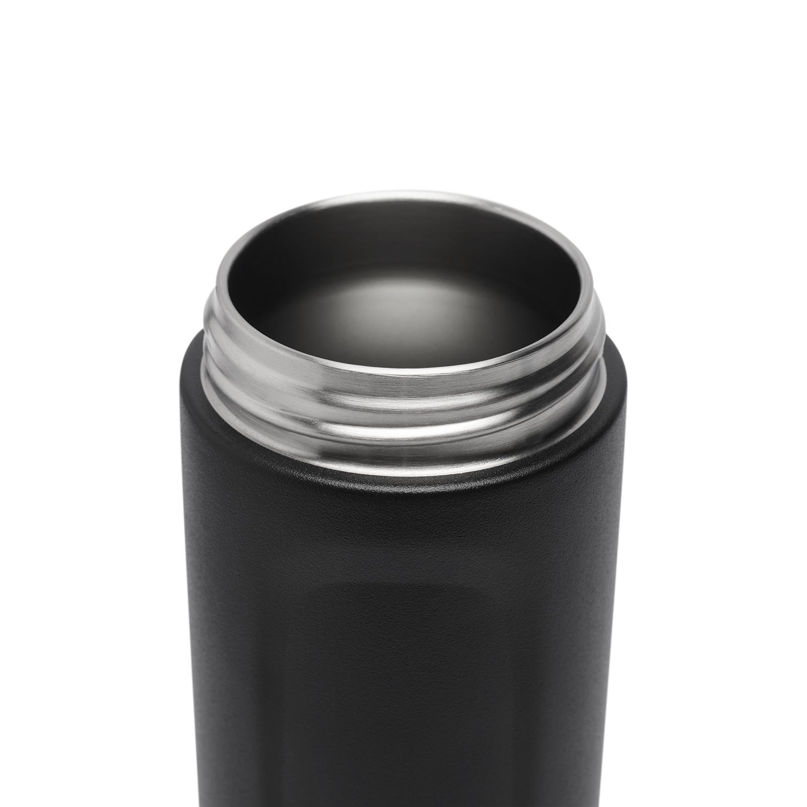 Термокружка сделана из пищевой нержавеющей стали 316L, стенки — с вакуумной изоляцией. Крышка плотно закручивается, а специальный клапан надежно закрывает горлышко.