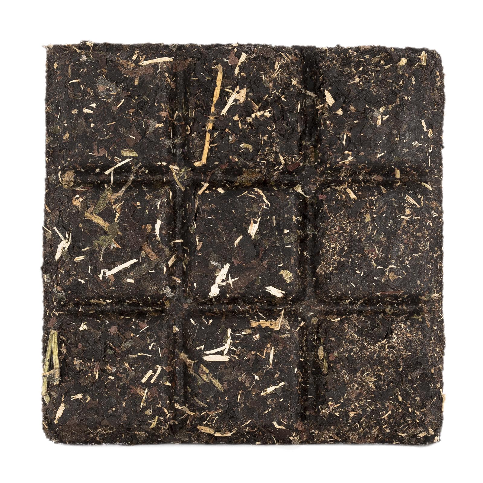 Чай спрессован в компактную плитку и поделен на дольки. Одного кусочка хватит на несколько завариваний.