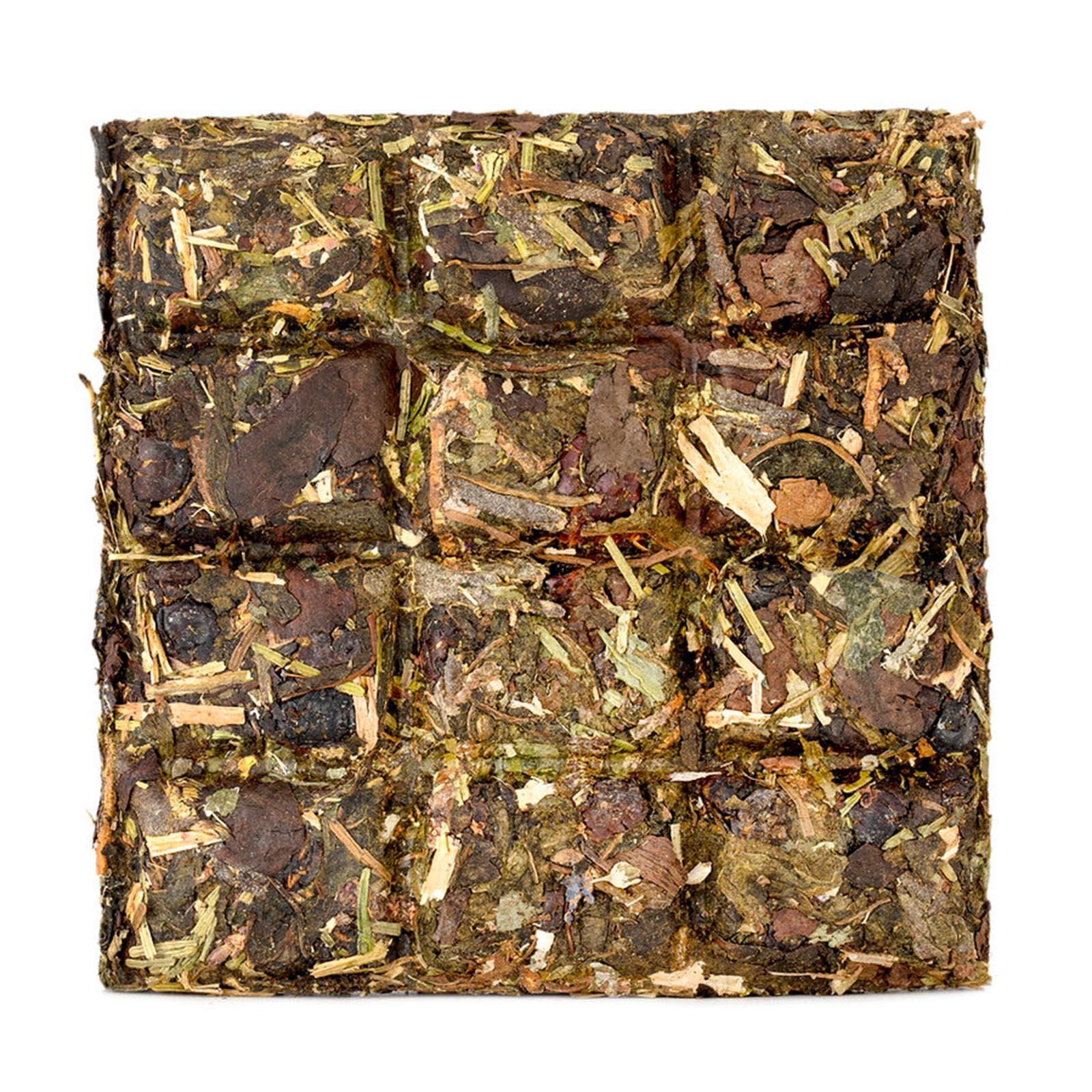 Смесь спрессована в компактную плитку и поделена на дольки. Одного кусочка хватит на литр напитка.